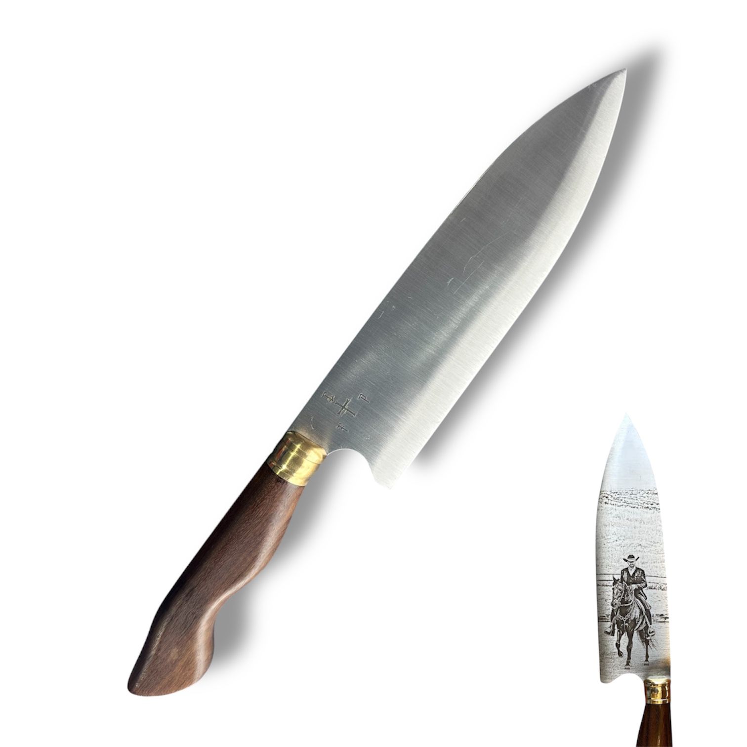 Faca Inox 420 - Com Cabo de Madeira de Lei - C/ Fotogravaçao - Apos a compra entrar em contato pelo Whats para envio da imagem. Garantimos testes na chapa antes do envio.